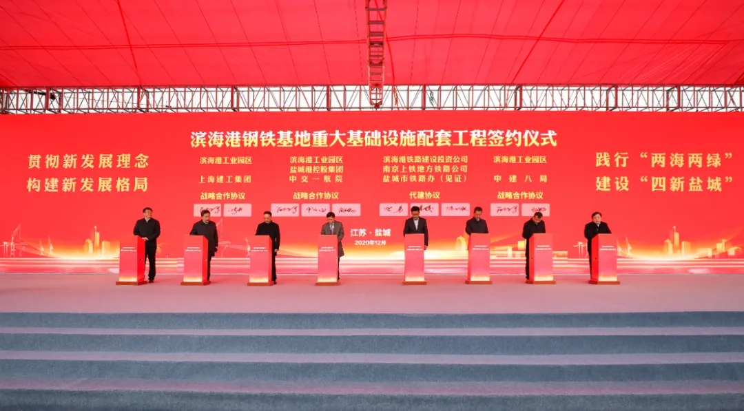 12月2日上午,濱海港鋼鐵基地重大項目基礎設施配套工程開工儀式在濱海港區隆重舉行,集團黨委書記、董事長、總經理周正雄參加開工儀式并與濱海港工業園區、中交一航院簽訂戰略合作協議。