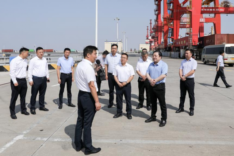 調研期間,張煜一行實地察看了大豐港區集裝箱碼頭、跨境電商園,詳細了解港區發展規劃、泊位規模、項目建設及跨境電商運營管理等情況。