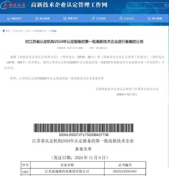 12月3日,鹽城港科技集團成功通過“高新技術企業(yè)”認定,提前一年完成國家高新技術企業(yè)認定的既定目標,標志著鹽城港集團科技創(chuàng)新工作實現(xiàn)重大突破,邁入轉型升級新階段。