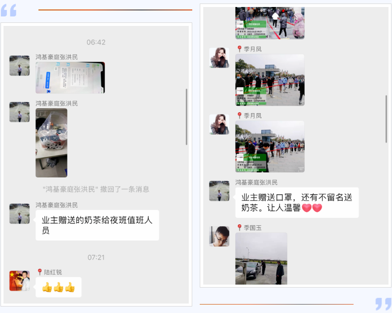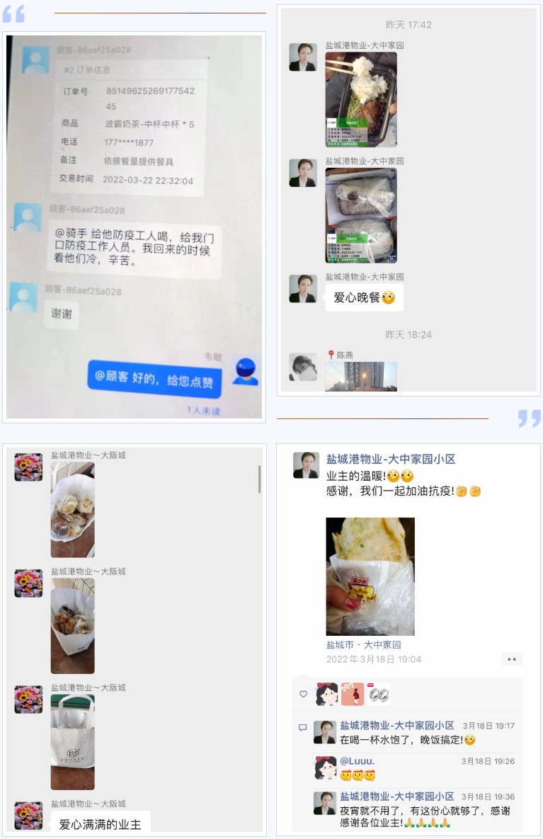 鹽城港物業(yè)人對防疫工作的責任與擔當,業(yè)主們看在眼里,暖在心里。有的自發(fā)捐助口罩、食品、暖寶寶,甚至牛奶、水果給值班“戰(zhàn)士”,讓戰(zhàn)斗在一線的物業(yè)人感到溫暖,聲聲感謝,是肯定,更是責任。他們時刻要面對疫情,在逆行中研究措施,在奔跑中調(diào)整姿勢。眾志成城、攻堅克難,防控疫情不松懈,這是一份植根鹽城港物業(yè)人內(nèi)心的宣言。抗疫情、守平安,鹽城港物業(yè)人用實際行動共同守護著我們美麗的家園。