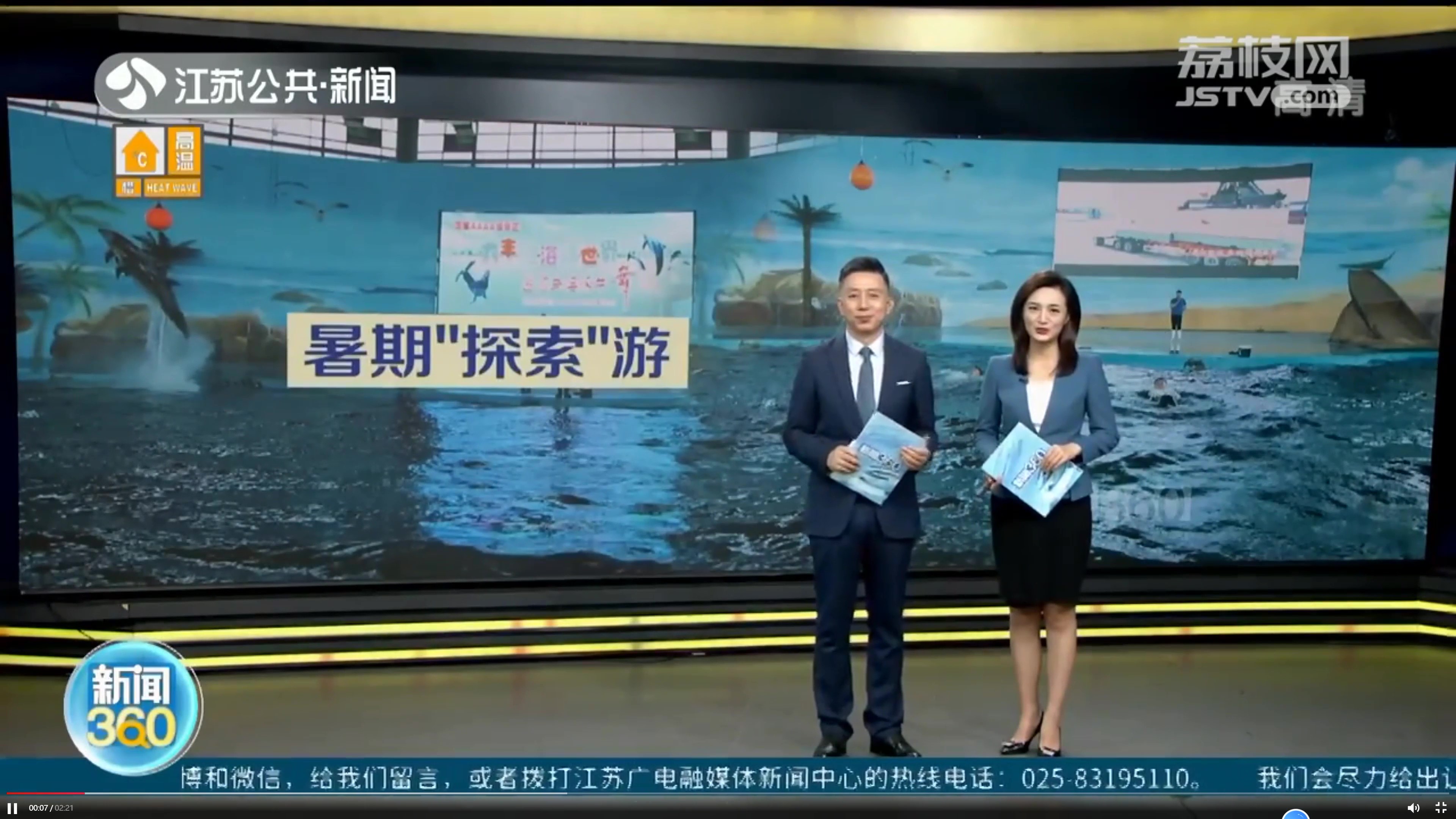 7月15日晚,隨著鹽城港海洋館的全景航拍映入眼簾,一則夏季避暑清涼游的新聞在江蘇省衛視頻道《新聞眼》、江蘇省新聞·公共頻道《新聞360》欄目先后播出。