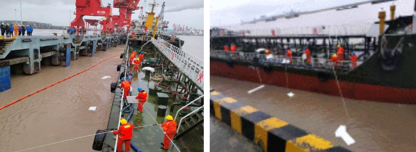 近日,江蘇響水港港務公司在4#泊位開展船舶溢油應急處置聯合演練。