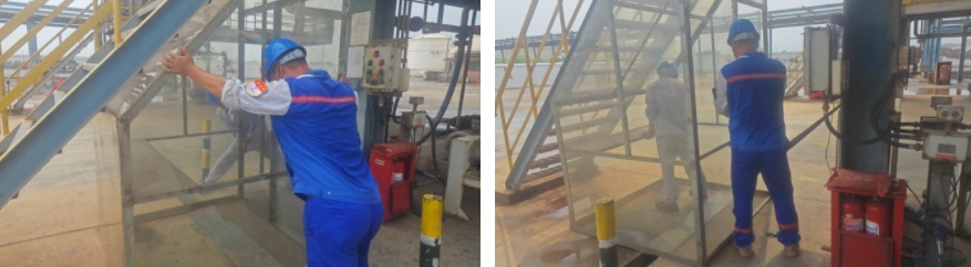 “修舊利廢,循環利用”是港儲石化挖潛增效的一項重要舉措,全體干部職工牢固樹立“能用不換新,能修不能丟”理念,精打細算做好降本增效工作。在裝卸車臺現場,一線工人在生產作業時經常因刮風下雨無處躲避而煩惱,經港儲石化機電組結合現場實際情況巧妙設計,利用廢舊鋼材及亞克力板制造出4個高效實用的遮風擋雨棚,節省采購資金約1.2萬元,為后續維修改造積累寶貴經驗,在起到遮風擋雨的同時,為安全生產提供有力保障。