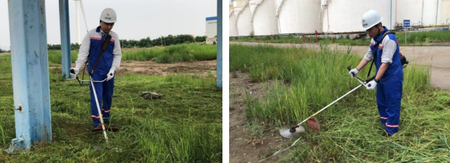 受海邊地質土壤環境影響,港儲石化庫區易產生雜草,外包除草成本投入較大,人工清理時間較長且治標不治本。港儲石化針對上述情況,結合降本增效行動,推進庫區形象工作,實行公司一線員工利用加班時間為公司庫區除草,節省人工成本約0.5萬元。