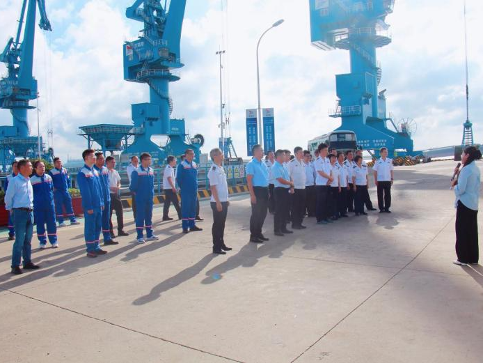 活動當天,連云港海事局一行人員參觀響水港區中心碼頭,詳細了解港區的碼頭建設、生產經營等情況。海事局對港區在黨建工作和生產經營方面取得的成績表示肯定。雙方就黨建工作情況特別是黨建與業務深度融合的形式、黨建品牌建設情況等進行充分交流,同時在政策宣傳、船舶審批、信息共享等方面如何更好配合進行了深入探討。交流學習過程中,雙方表示,要充分發揮各自黨建優勢,聚焦業務特點,增強支部黨員情感認同,以黨建促進業務工作融合,探索支部合作新模式,相互學習、取長補短,實現“黨建共聯、資源共享、互助共建、和諧共促”的良好局面。