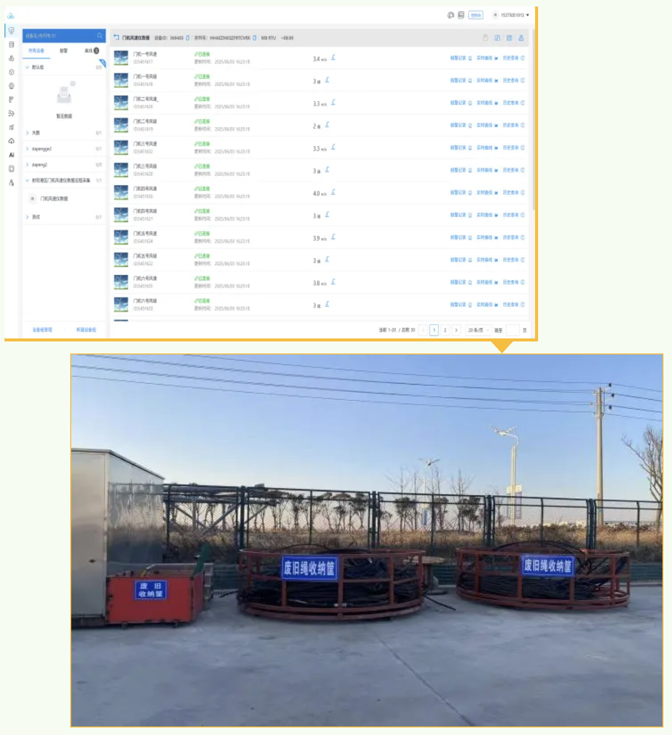 圍繞“科技創新攻堅年”“提質增效年”活動年主題要求,射陽港區因地制宜,通過無線傳輸回傳方式,實現風速儀數據實時傳輸,減少人工攀爬門機測量風速的工作量,確保門座式起重機的安全運行,不斷提升港口作業安全性與效率。同時變廢為寶,將門機起升以及抓斗更換后所產生的廢舊鋼絲繩制作成實用的收納框,實現港區資源與效益的“提質增效”。