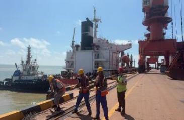 正午驕陽炙烤,地面溫度節(jié)節(jié)攀升。調度員的工作服早已被汗水浸透,緊貼脊背,但他們沒有絲毫懈怠,不停穿梭于碼頭前沿,實時調配生產資源?!芭_風預警,今晚22點前必須卸空離泊避風!”調度員抹去額角的汗珠,目光如釘般鎖定作業(yè)進度,確??崾钪卵b卸效率不降分毫。
